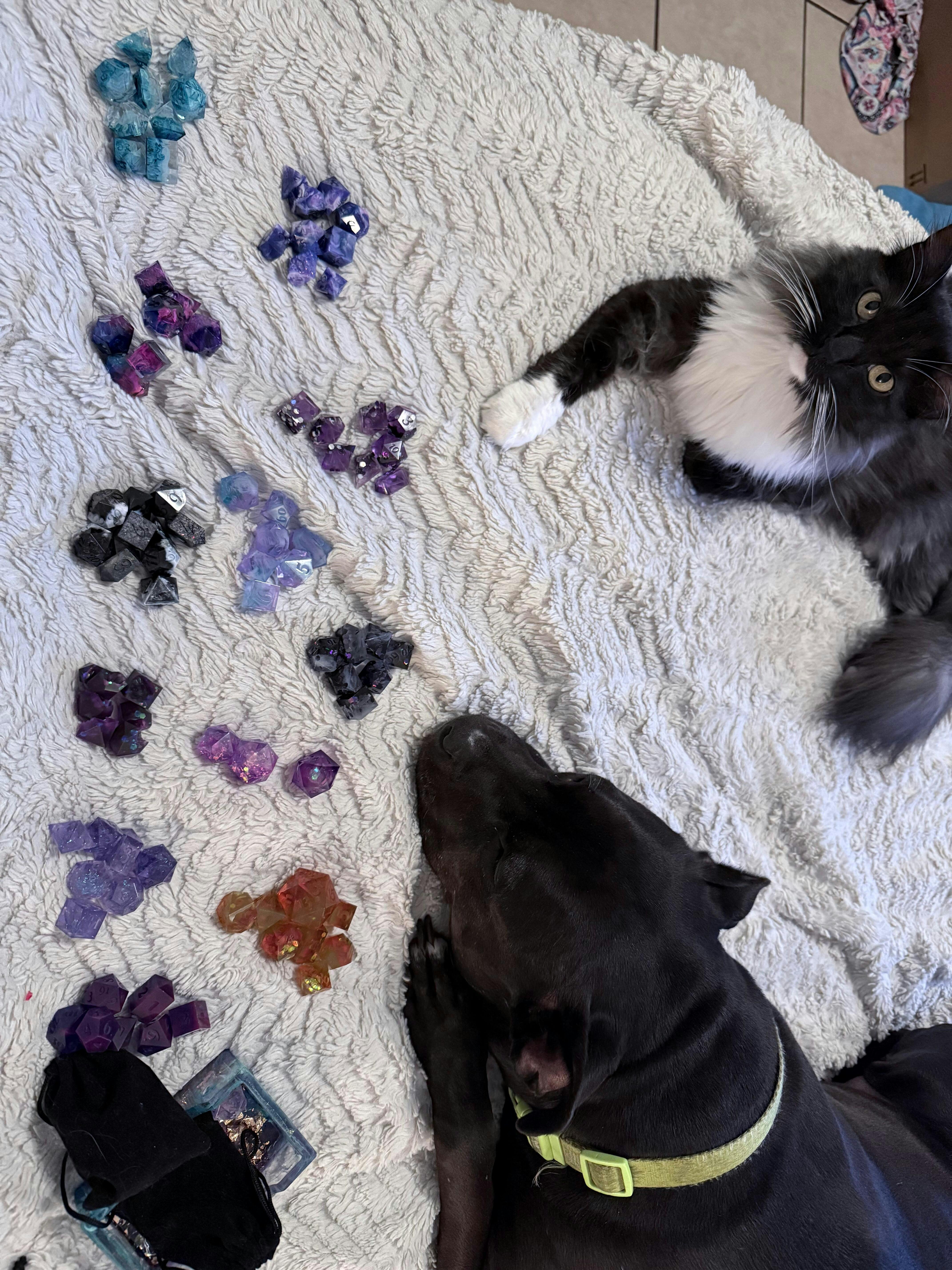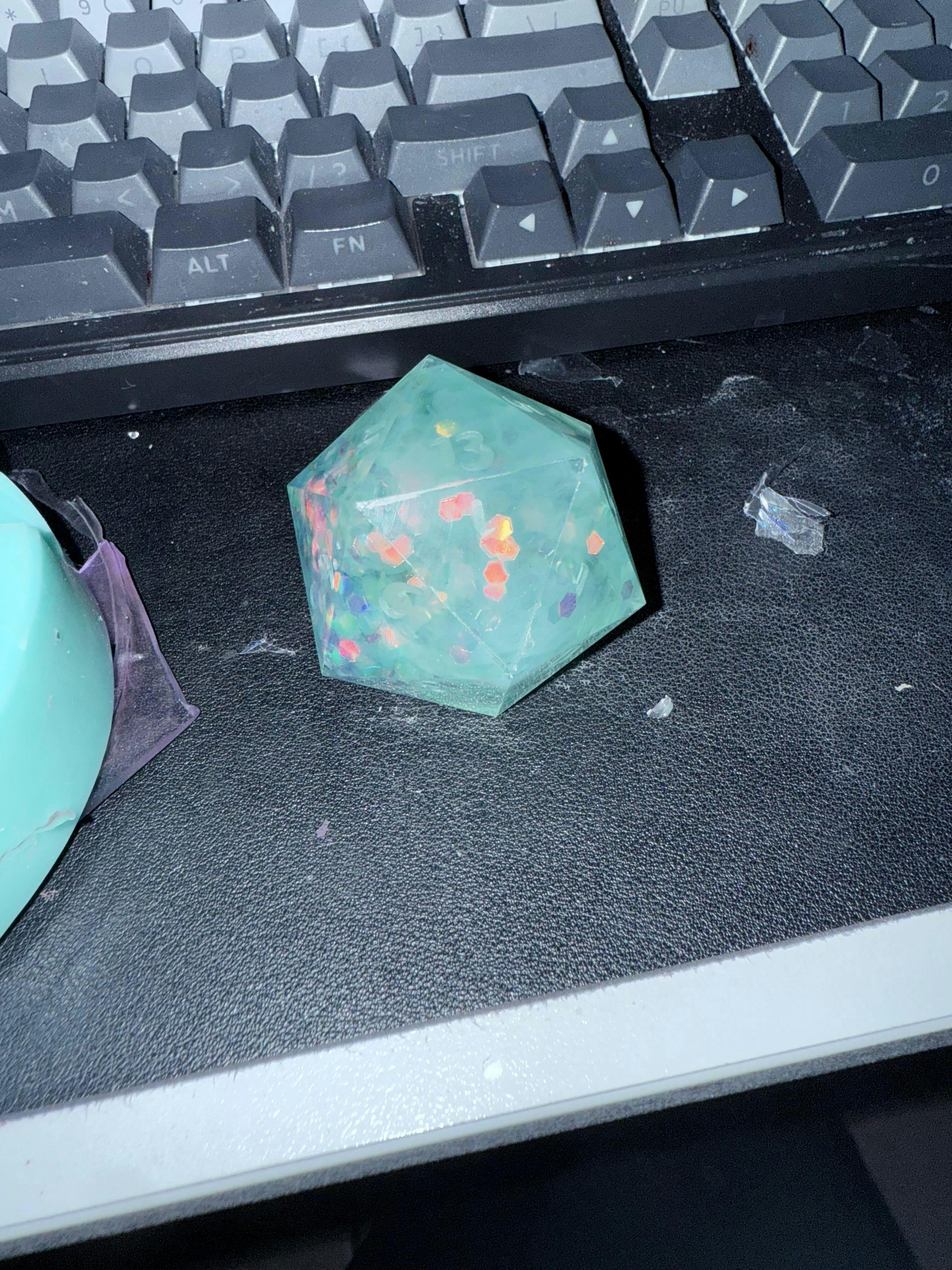 This sample includes enough fiber to make at least one full set of dice or one 30mm D20, so you'll have plenty to experiment with different colors and designs.