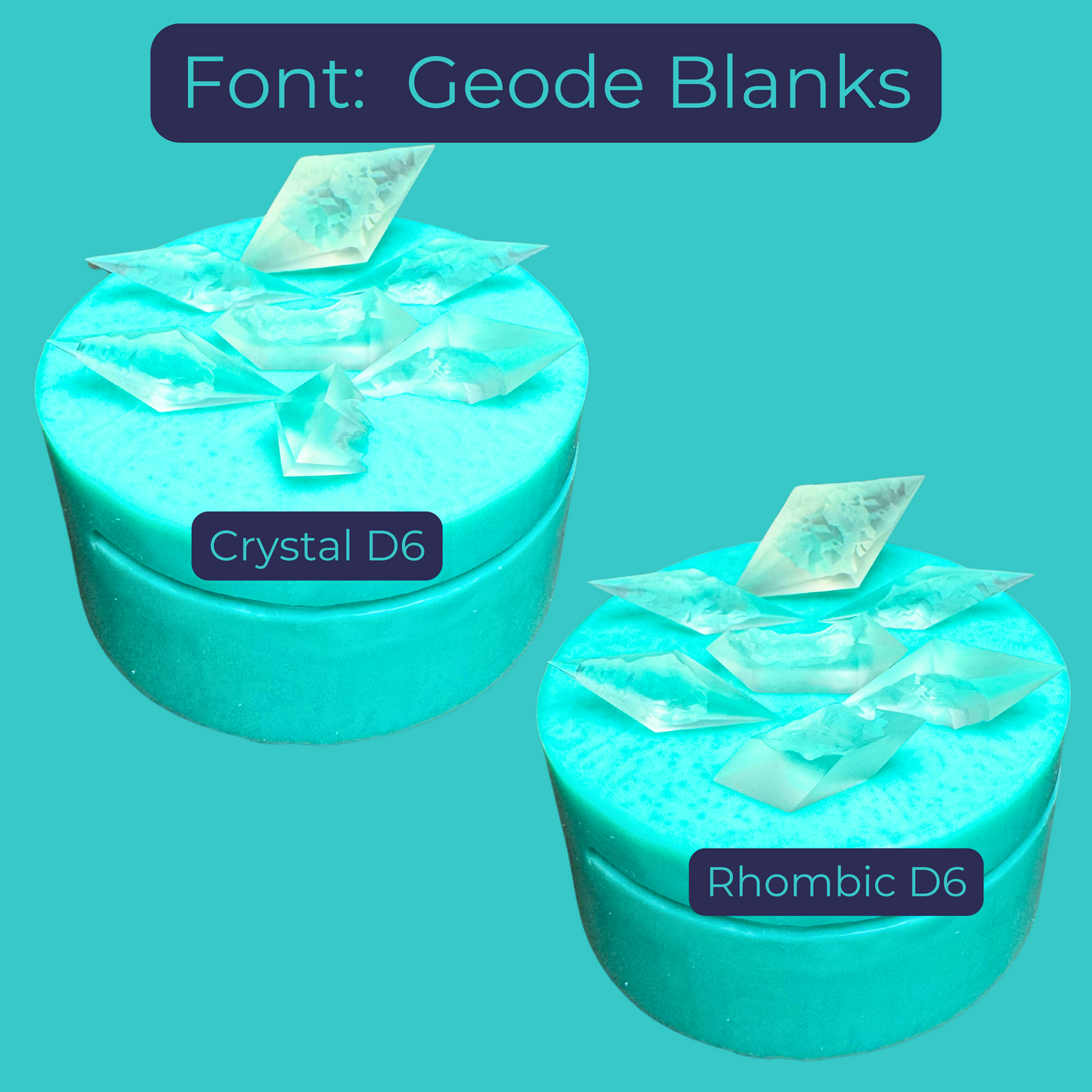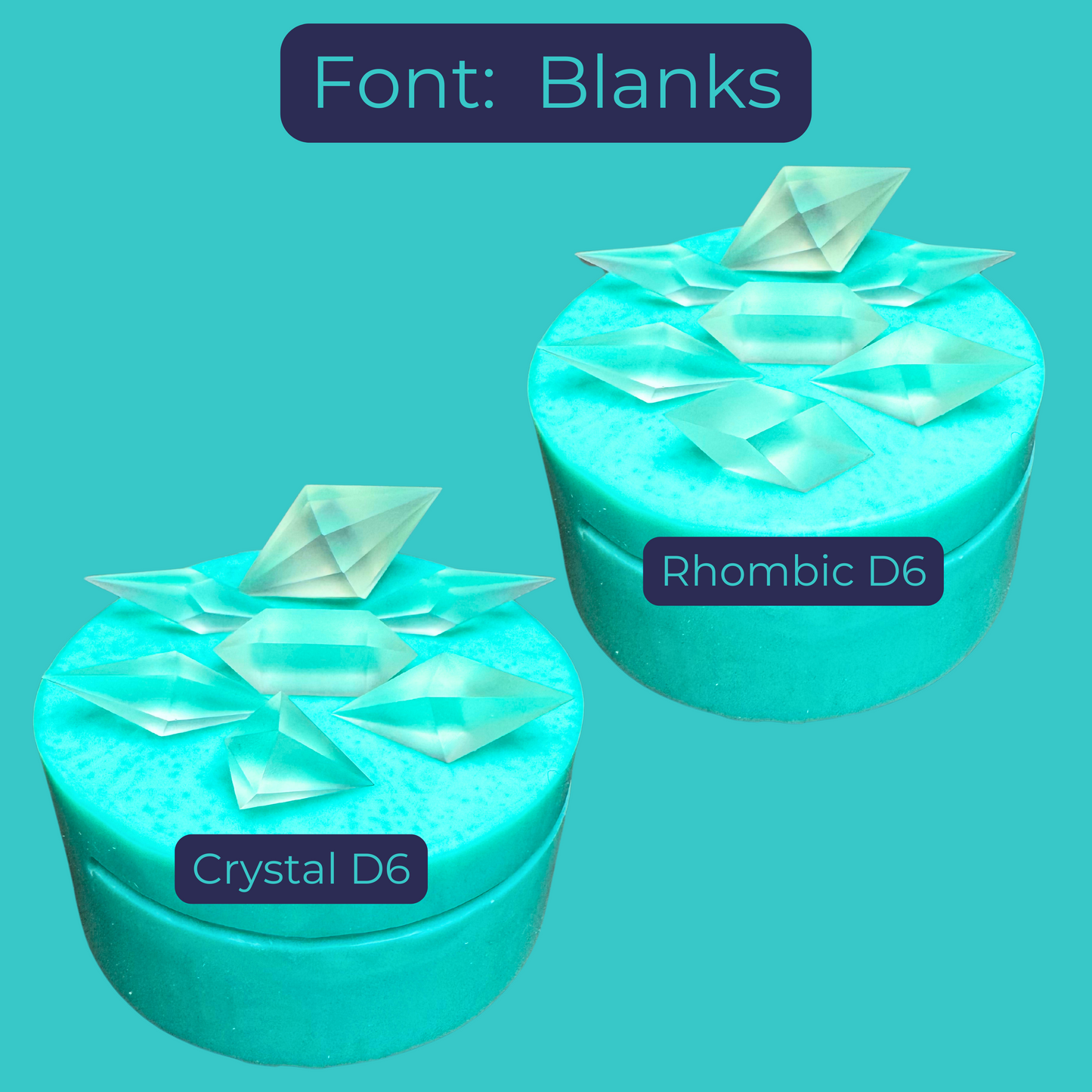 The blanks and geode blanks specifically designed for this elongated crystal dice mold listing are sized to fit perfectly into both the Vanilla Extract and Berkshire Swash numbered dice molds, offering exciting customization possibilities for your elongated designs.